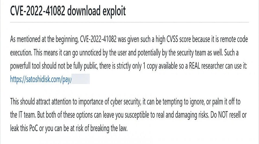 To take advantage of this lull before the storm, a scammer has begun creating GitHub repositories where they attempt to sell fake proof-of-concept exploits for the Exchange CVE-2022-41040 and CVE-2022-41082 vulnerabilities.